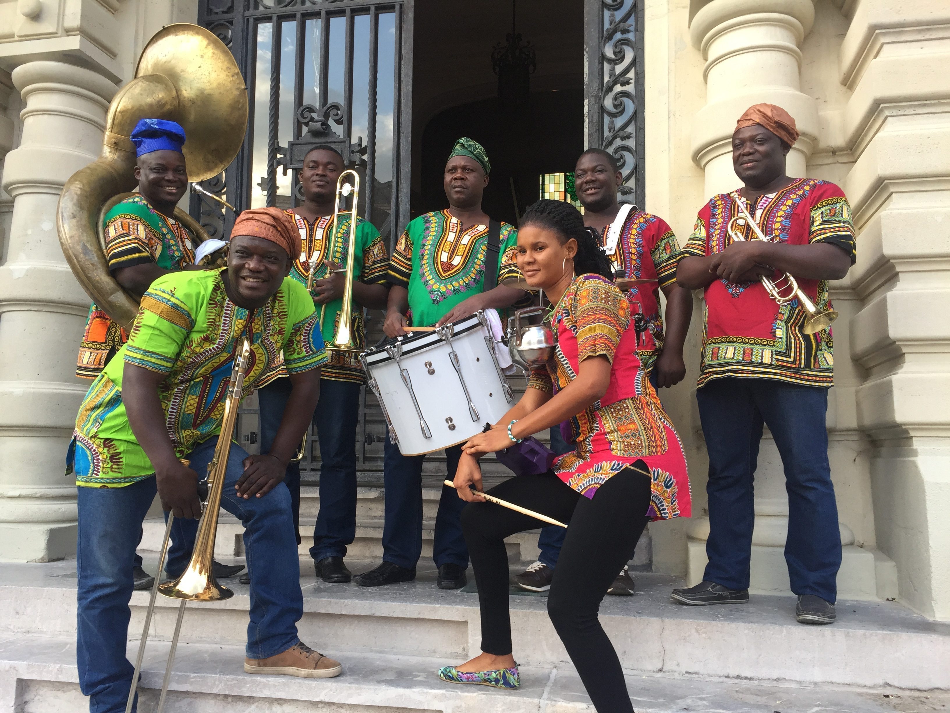 Eyo´Nle Brass Band (« Réjouissons-nous » en Yoruba): veut valoriser la musique béninoise avec pour ambition d’apporter aux rythmes « traditionnels », un peu de modernité. Percussions et cuivres se mélangent alors parfaitement pour un style béninois-jazzy. Avec un répertoire varié et représentatif de l’homme africain contemporain, attaché à ses traditions et touché par des problématiques sociales, le spectacle est fantastique…