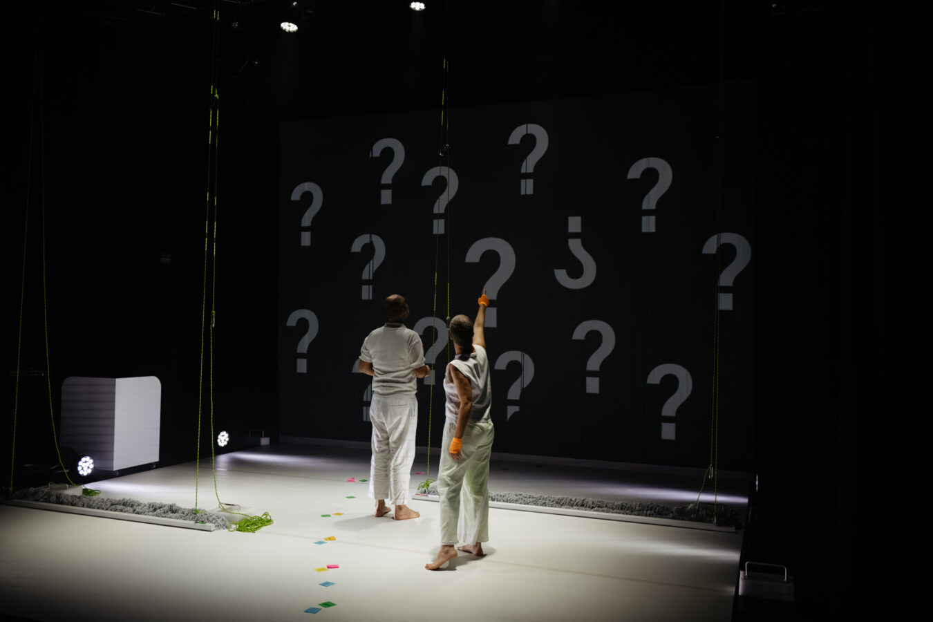 Eine spielerische und tänzerische Performance rund um die grenzenlosen Fragen der Kinder. Karen Bentfeld und Wellington Barros suchen schwungvoll nach musikalischen, visuellen und tänzerischen Antworten jenseits der Sprachen. Für alle ab 8 Jahren.
