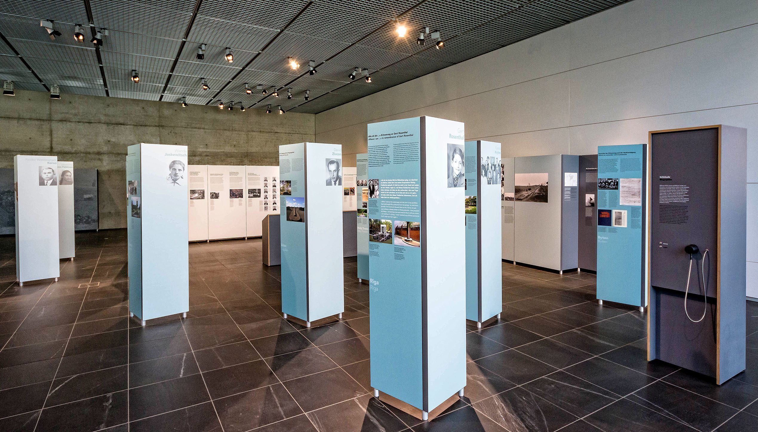 Die Ausstellung bietet Erklärungsansätze zu der Frage, was Männer dazu brachte, sich am Massenmord zu beteiligen. Außerdem geben eine Fotoserie mit Großaufnahmen und Interviews mit Überlebenden Raum, sich mit der Situation der Verfolgten auseinanderzusetzen. Schicksale Einzelner werden auf frei im Raum stehenden Stelen vorgestellt, um der verschiedenen Gruppen zu gedenken, die Opfer der NS-Mordpolitik wurden.