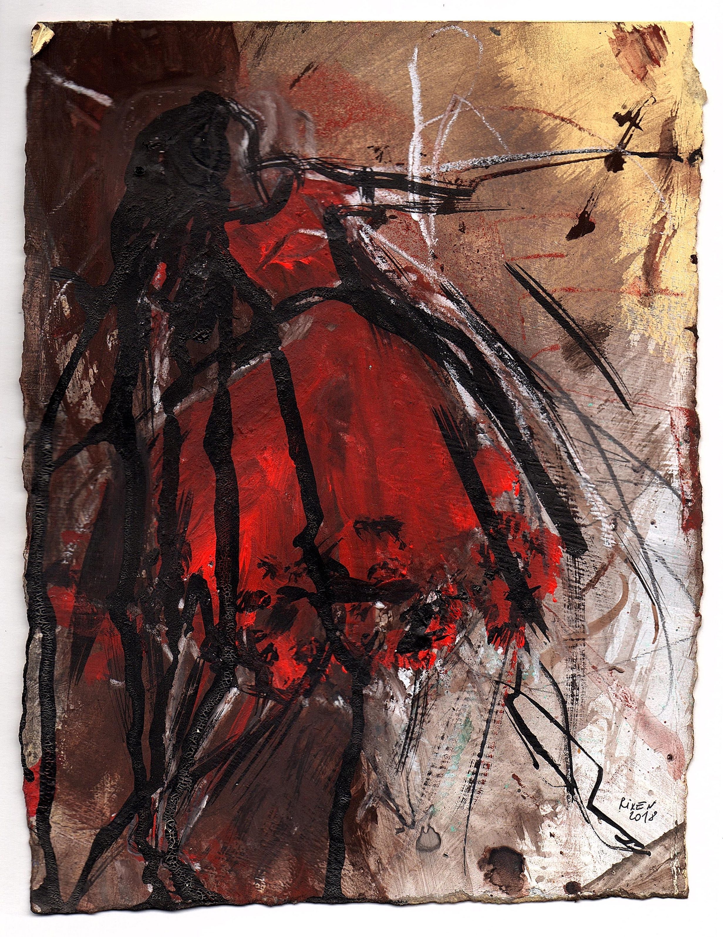 Ihre Arbeiten zeigen verdrehte Körper, ganz an die Bewegung hingegeben, dynamisch und kraftvoll mit wenigen Strichen auf den Untergrund geworfen.