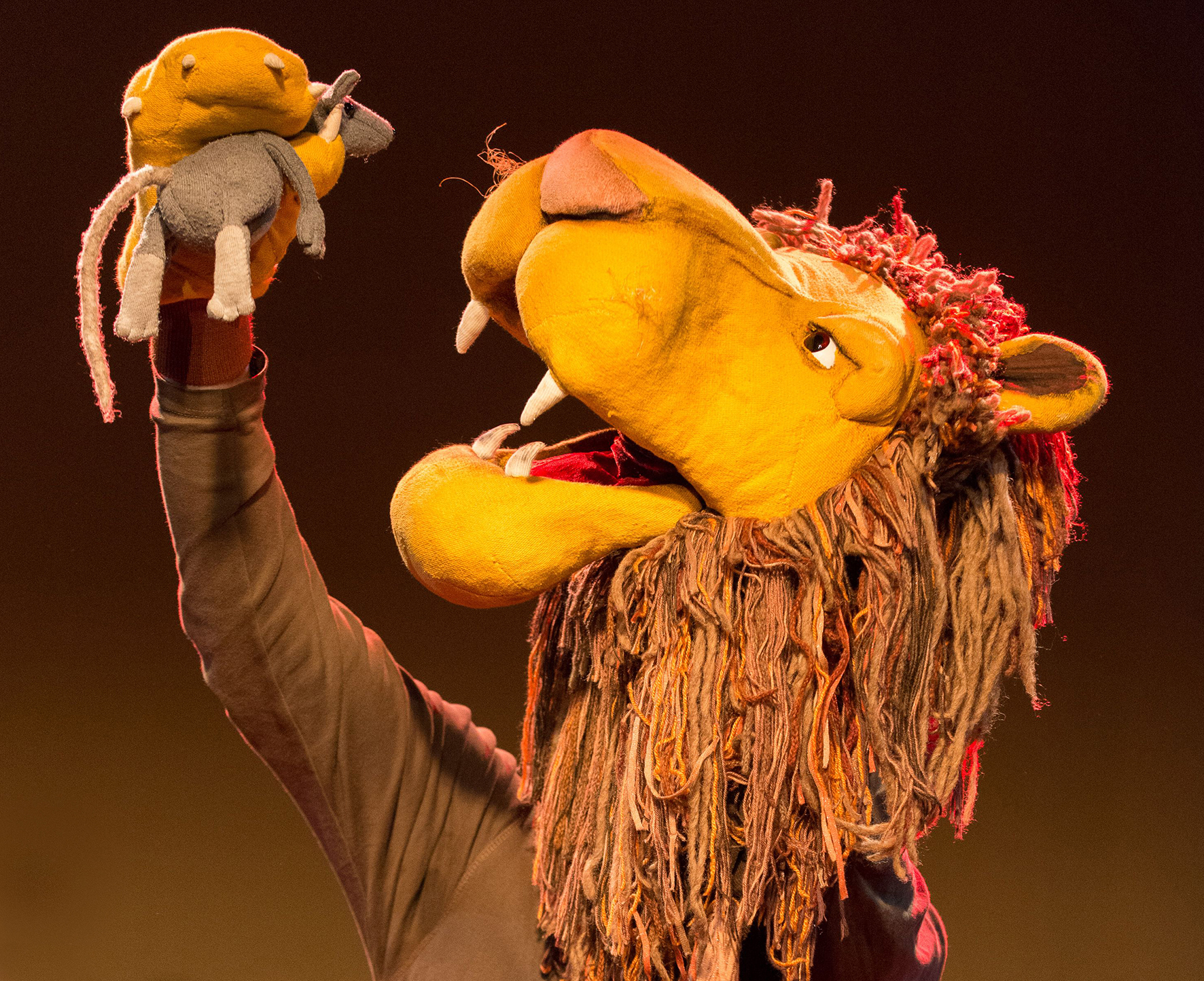 „Löwe und Maus“ basiert auf der gleichnamigen Fabel von Aesop. Auf der Bühne ein Sofa und Zimmerpflanzen, dann der Klang einer Buschtrommel, die Schatten einer Elefantenherde ziehen vorbei und schon fühlen sich die Kinder mitten in der Steppe Afrikas. Eine Geschichte darüber, dass die Großen manchmal eine kleine Hilfe brauchen und die Kleinen Mut beweisen und Großes vollbringen können… Das Theaterstück ist eine abwechslungsreiche Mischung aus Schauspiel, Masken- und Schattenspiel und kann je nach Alter der Kinder in zwei Versionen aufgeführt werden.
