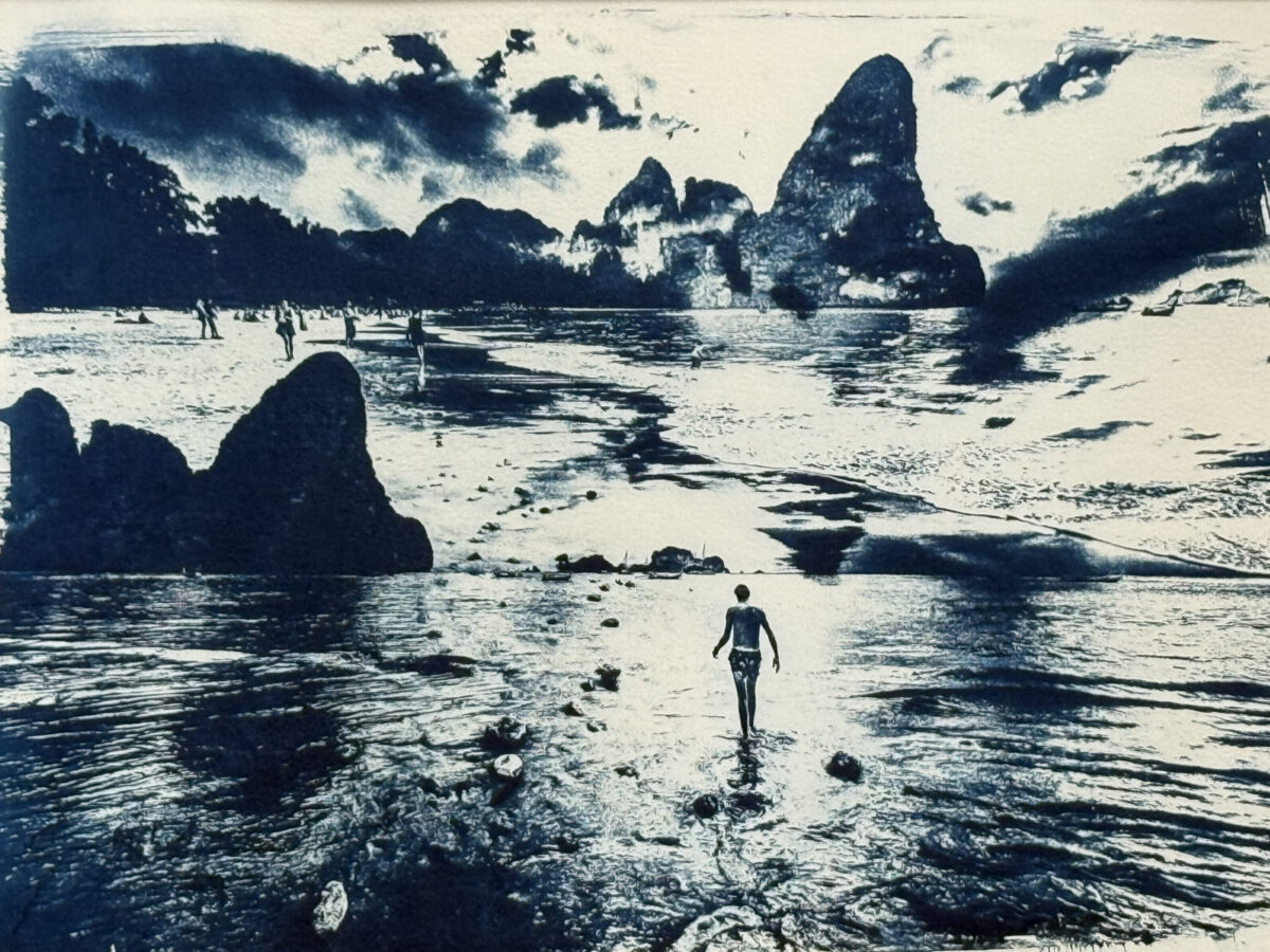 Ihre Arbeiten bewegen sich an der Grenze des Sichtbaren. In den Cyanotypien und Fotografien verschmelzen Wasser, Himmel, Erde und Materie zu poetischen Kompositionen, in denen sich Erinnerung und Vergänglichkeit begegnen. Jeder Moment scheint eingefroren und zugleich in Bewegung – ein flüchtiges Innehalten zwischen den Welten. So entstehen Bildräume, die uns dazu einladen, unter die Oberfläche zu blicken, die eigenen Wahrnehmungen zu hinterfragen und sich in ein intimes, geheimnisvolles Anderswo zu verlieren. „Unsichtbare Übergänge“ ist eine visuelle Reise, auf der jeder Blick eine neue Geschichte entstehen lässt.