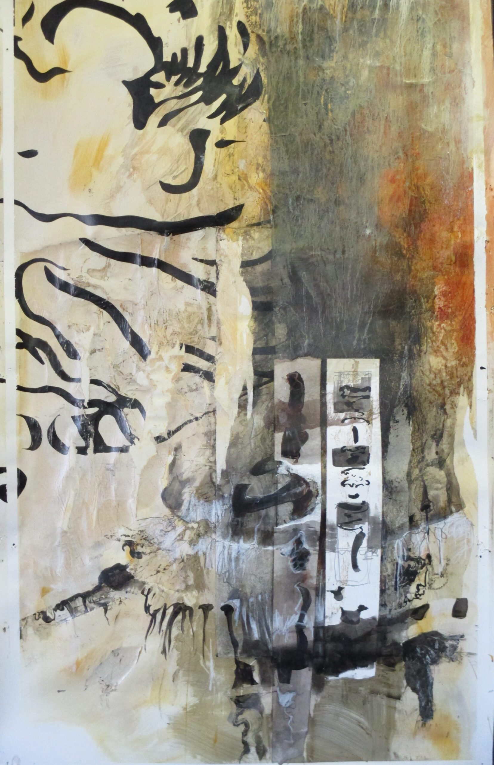 „Die Schichten unserer Haut sind Hüllen, Identität und Zeugen unserer persönlichen Geschichte. Durch sie können wir Vergänglichkeit, Wunden, Gefühle, Temperatur, Liebe, Materialien und Texturen erfahren. Die Haut faltet sich, reißt, blutet, kühlt, altert, schwitzt, klebt, trocknet, riecht, streichelt, (…) und wird zu einer Reihe von Identitätsschichten eines fühlenden Wesens“, erklärt Markus Neumann. Indem er die Haut beobachtet, versucht zu verstehen und zu sehen, schafft er eine „pikturale Haut“. Zeichnungen, Materialien, Papiere, Farben und Schriftzüge überlagern sich – dabei werden sie in jedem Moment zu einer Ansammlung von Schichten, altern mit jeder Stunde, reißen, kleben und verändern ihre Farbe. Das Ergebnis sind Ausschnitte der Haut, die unsere täglichen Erfahrungen aufnimmt und verinnerlicht. Begleitet werden diese pikturalen Ergebnisse von poetischen Texten über Identität, Heimat und Kultur.
