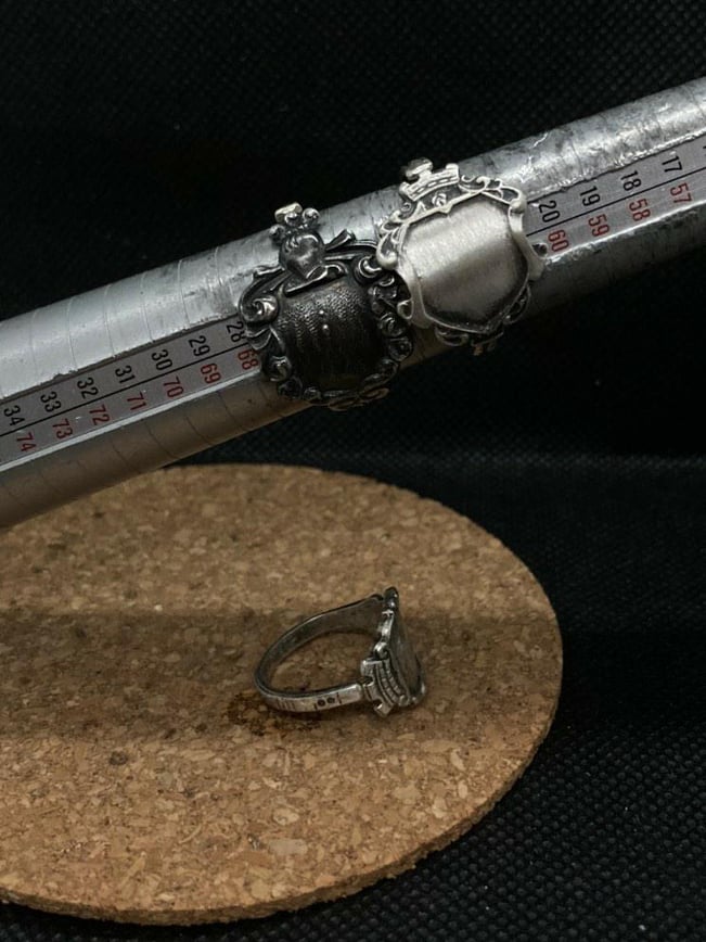 Der junge Künstler Maxim Blees stellt seine Designs aus. Er präsentiert einzigartige selbstgemachte Ringe (Upcycling).